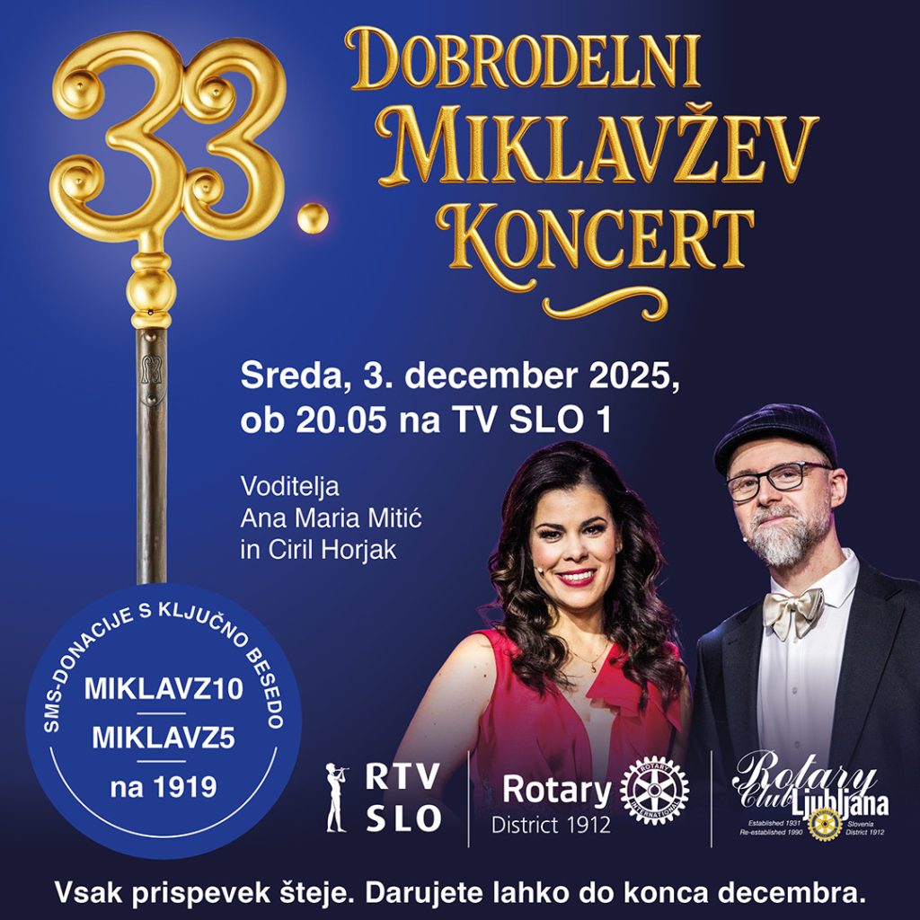 Rotary club Ljubljana in Rotary district 1912 vabita k ogledu 33. Dobrodelnega Miklavževega koncerta, ki bo 3. 12. 2025 ob 20.05 na TV SLO 1, s katerim zbirajo sredstva za pomoč otrokom v stiski. Tudi otroci naše šole so vsako leto deležni pomoči iz njihovih zbranih sredstev.