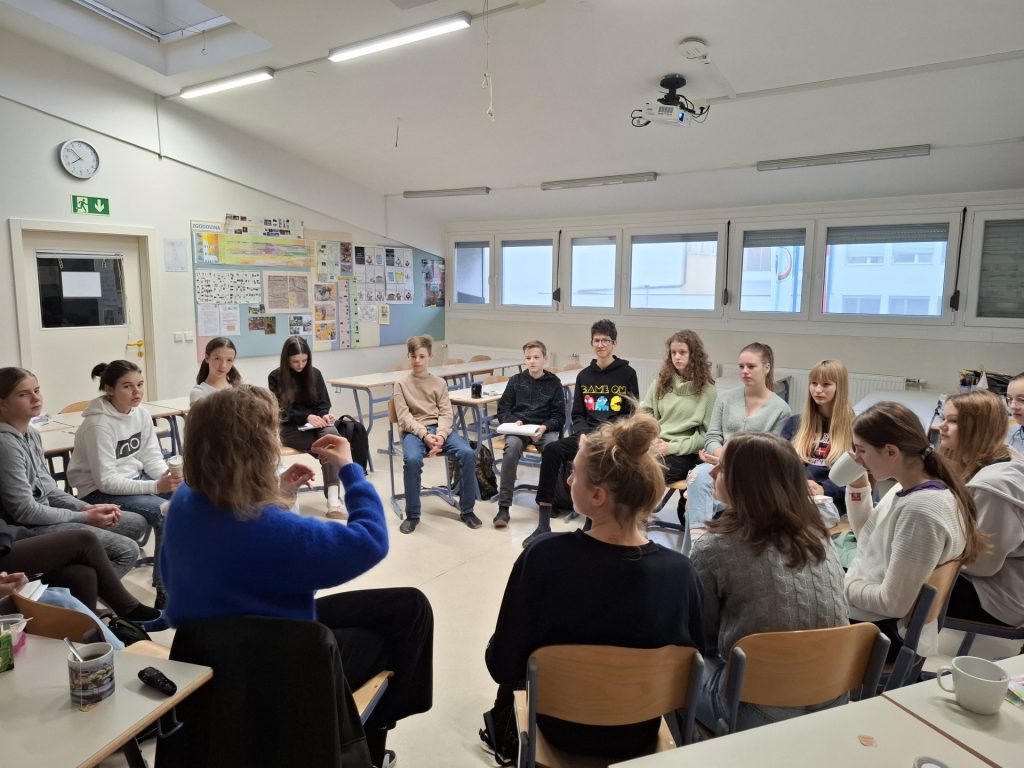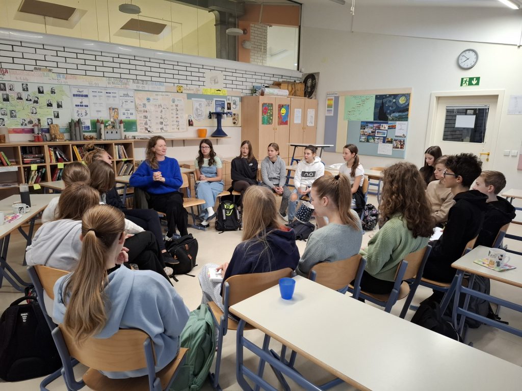 Učenci so se zbrali že ob 7.30 in ob čaju in sladkih piškotih z gospo poklepetali o njenem pisateljevanju, romanu in še čem. Iz prve roke so lahko spoznali, kako je pisateljica ustvarila svojo knjigo, lahko so ji zastavili vprašanja in jo zaprosili za avtogram.