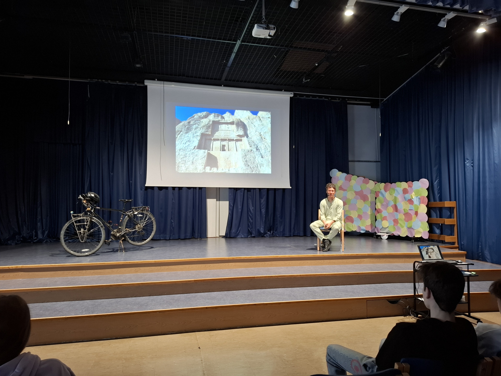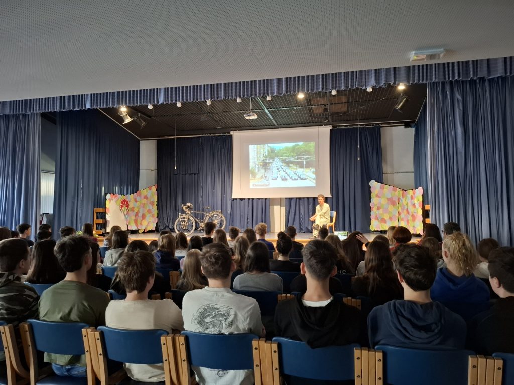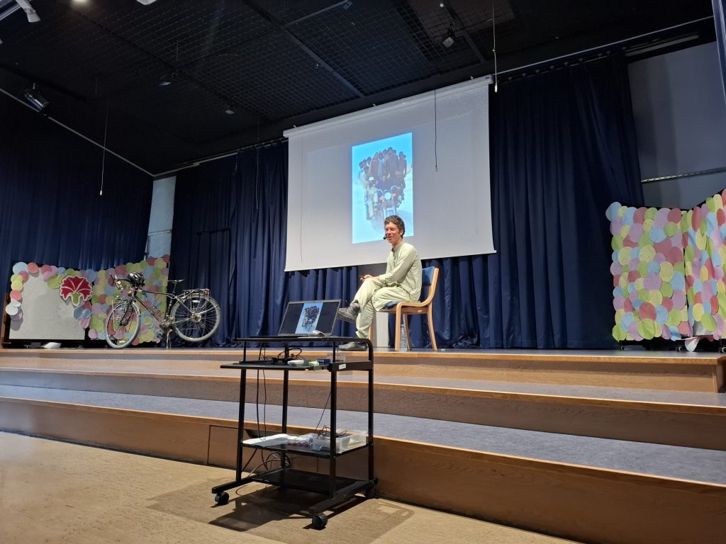 V ponedeljek, 7. aprila, so se učenci zbrali v šolski dvorani in dve šolski uri navdušeno poslušali učitelja Uroša Marolta, ki je v enem letu prekolesaril 13 držav, od Slovenije do Indije. Dve uri sta bili žal premalo, da bi podal vse svoje izkušnje in da bi mu lahko učenci zastavili vsa svoja vprašanja. Zagotovo pa je pridobil njihovo pozornost, ko je razlagal s pomočjo lastnega fotografskega gradiva svoje dogodivščine na dolgi poti.
