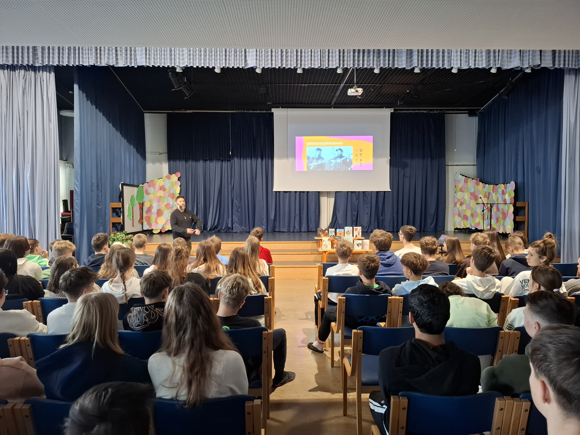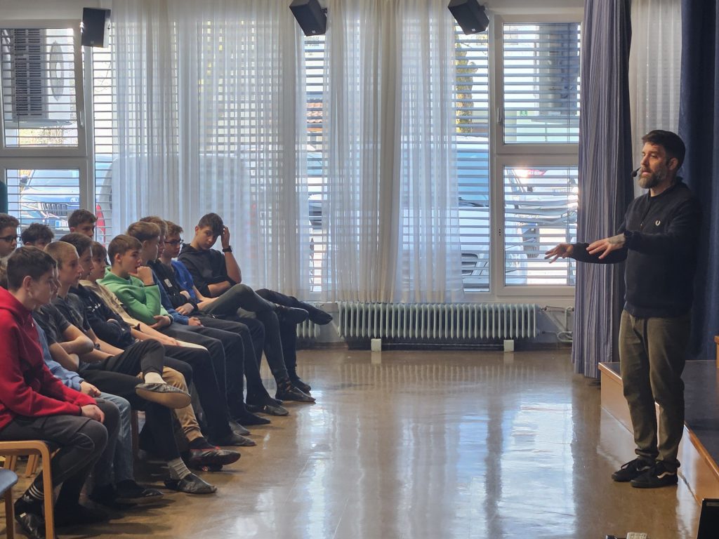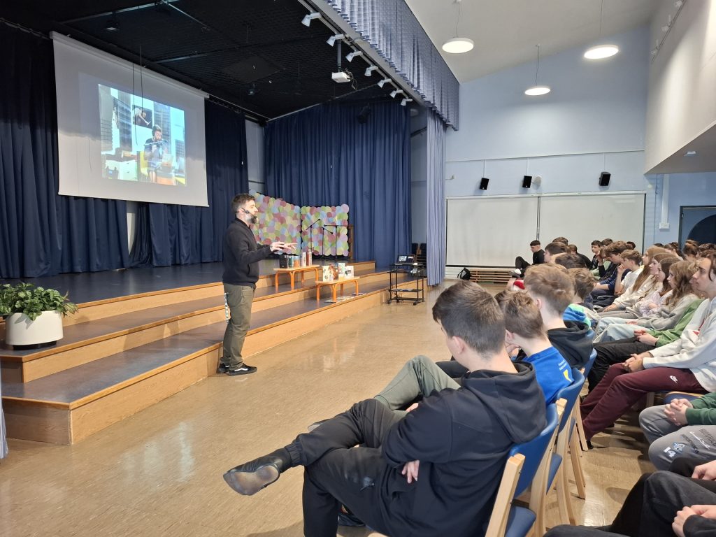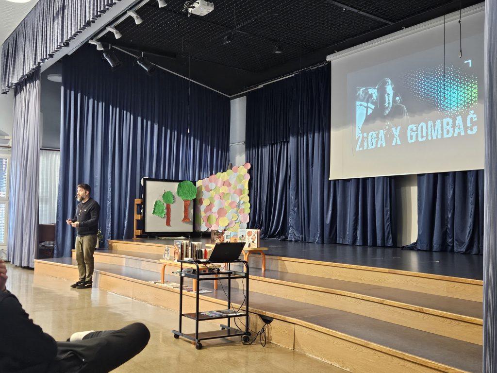 V četrtek, 3. aprila, dan po svetovnem dnevu knjige, je učence 8. razreda obiskal vsestranski umetnik, predvsem pa pisatelj, Žiga X Gombač. Z mladimi je poklepetal o svoji šolski in poklicni poti. Mladi so ugotovili, da je gospod zares ustvarjalen in vsem velik navdih.
