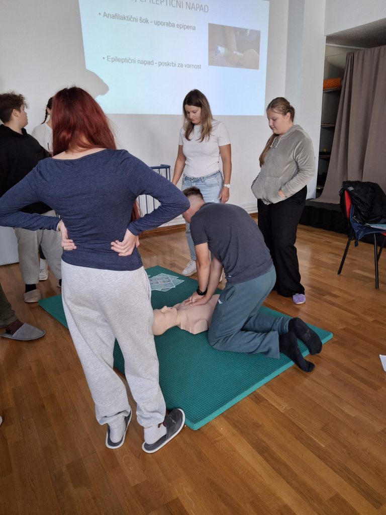 Po prihodu v hotel smo se posvetili pomembni temi – prvi pomoči. Delavnico smo izvedli na zanimiv in interaktiven način, novo znanje pa takoj tudi preizkusili v praksi.