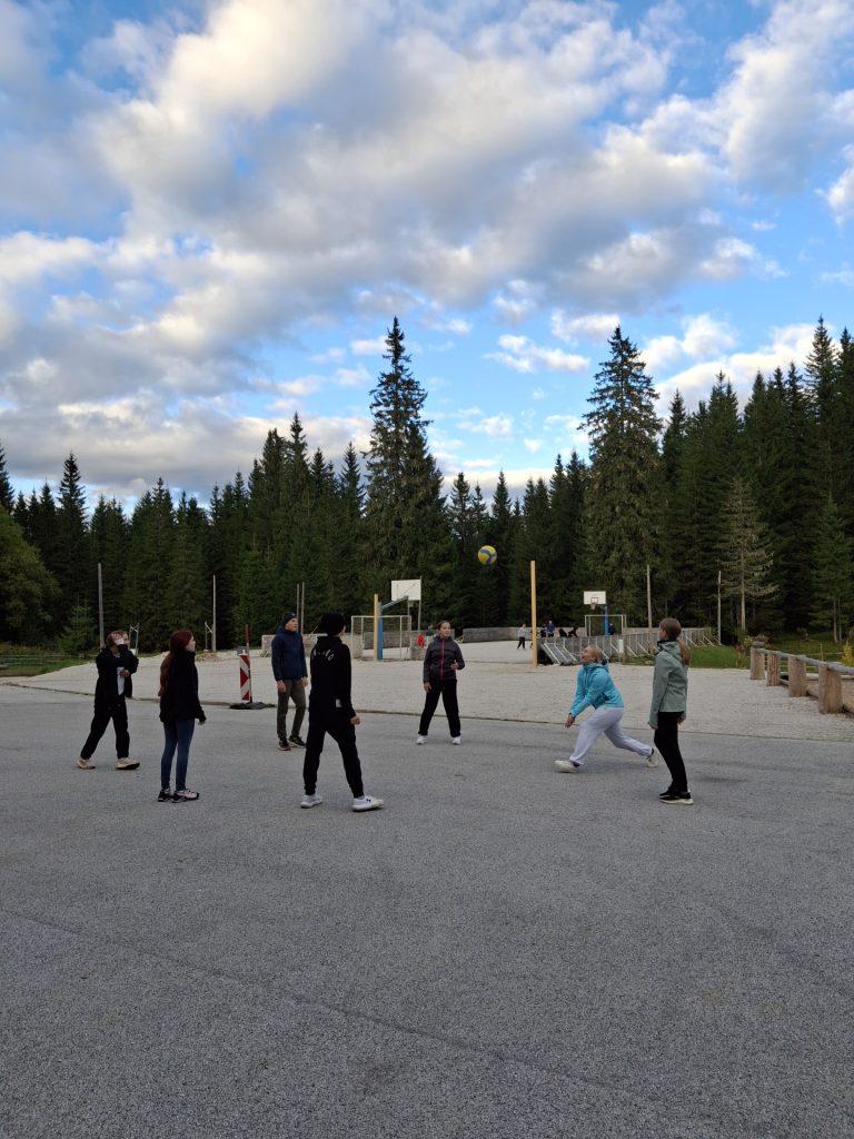 Popoldan smo preživeli v naravi, kjer smo raziskovali učno pot na Šotnem barju Goreljek. Svež gorski zrak in čudoviti razgledi so nas navdušili in napolnili z energijo za športne aktivnosti, ki so sledile. Igrali smo nogomet, košarko, odbojko, namizni tenis in še kaj – prav vsak je našel nekaj zase.
