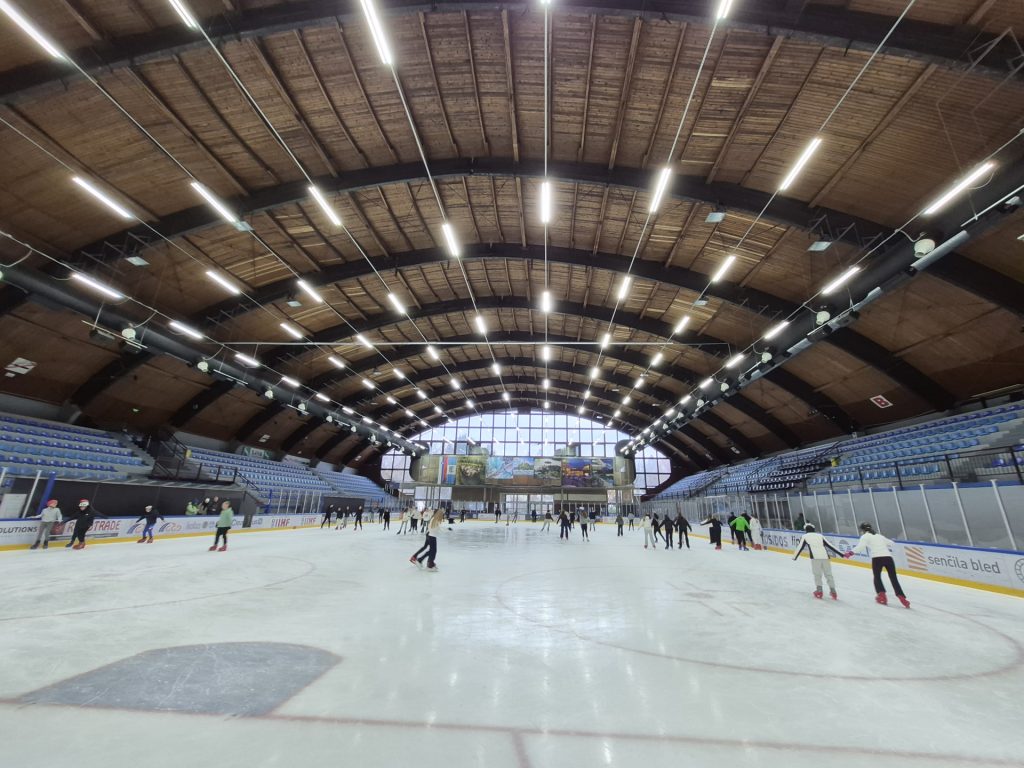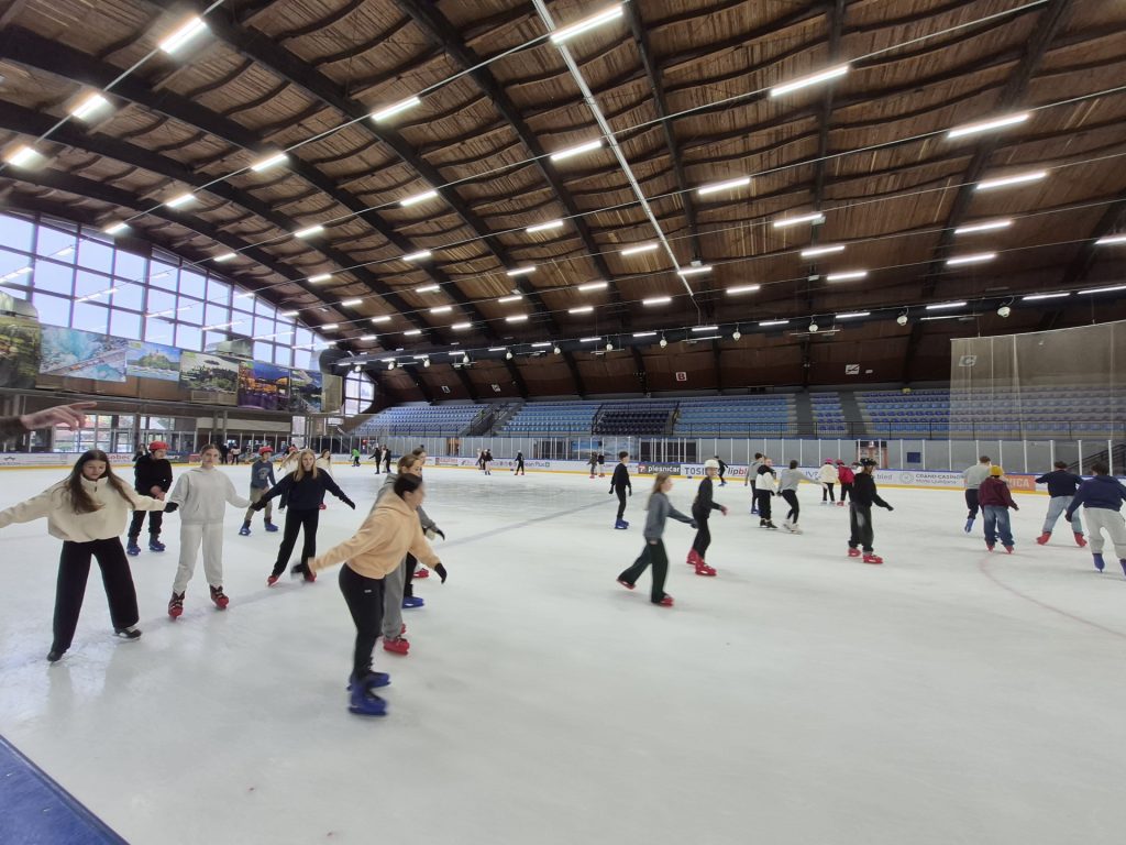 Po ledeni dvorani je odmeval smeh, drsalke pa so puščale tanke sledi, ki so hitro izginile pod novimi koraki.