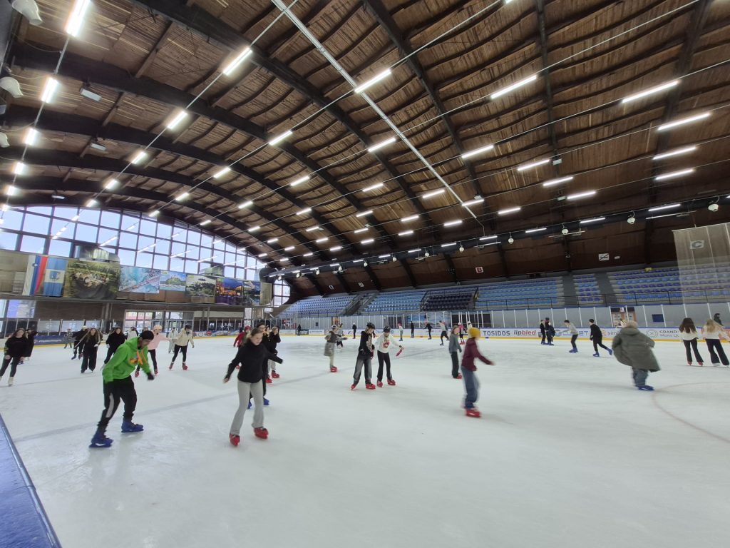 Del učencev 8. in 9. razreda je dopoldne 16. januarja preživel na Bledu, kjer so se najprej preizkusili v drsanju, zatem pa odšli na ogled lepot Blejskega jezera z okolico.