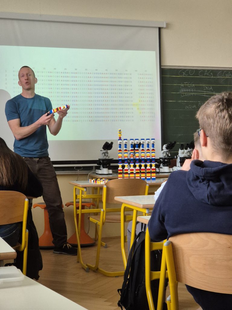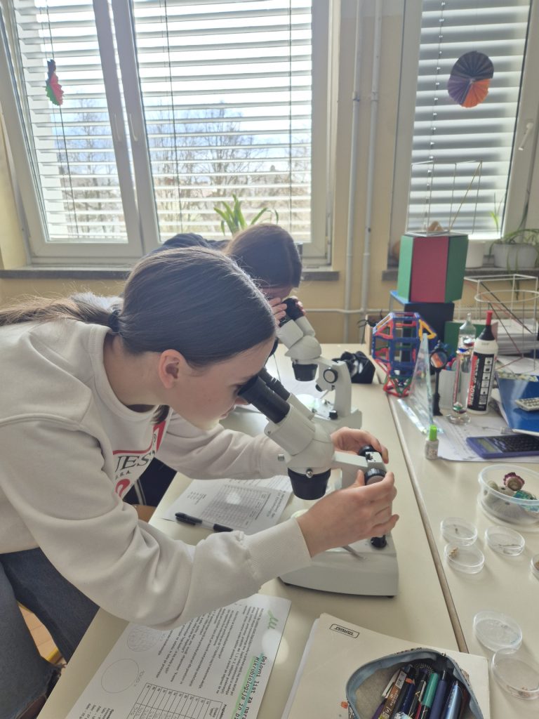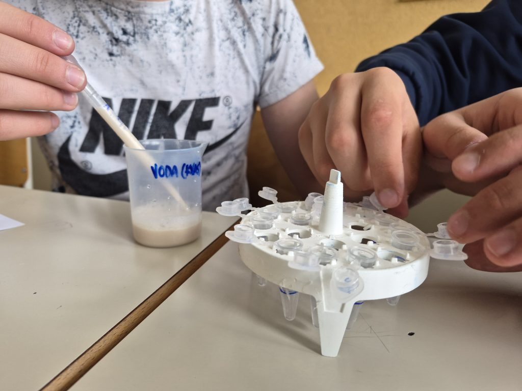 Na današnjem naravoslovnem dnevu smo se naučili veliko novih in hkrati zanimivih stvari s področja mikrobiologije in biotehnologije. Po krajšem uvodnem predavanju smo se lotili prvega eksperimenta s kvasovkami. Po malici smo se preizkusili v vlogi ribosomov pri sestavljanju proteinov. Za dober zaključek smo z mikroskopi opazovali kolonije plesni in bakterijo ter tudi vsakdanje predmete. Naučili smo se veliko novih in predvsem zanimivih stvari. Preživeli smo res super petek.