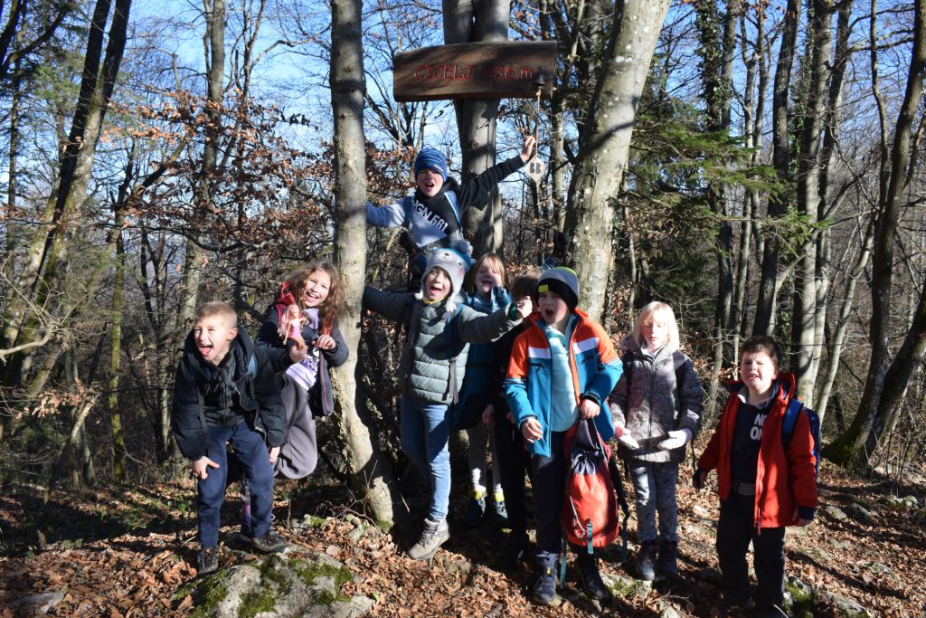 V soboto, 29. 11., smo se planinci zbrali navsezgodaj pod uro glavne postaje v megleni Ljubljani. Zapeljali smo se ob Savi do Senožeti, od koder smo zakorakali v gozd, pobeljen od ivja. Višje nas je nenadoma presenetilo sonce in pod nami razkrilo megleno morje in otoke hribov. Na severni strani Sv. Miklavža je bilo še ravno dovolj snega za snežaka. Na sosednji Cicelj smo se odpravili po zaklad, a našli le skrivnostno gozdno hišico. Krožno pot smo sklenili v zdaj že sončni dolini, bogatejši za lepo preživet dan.