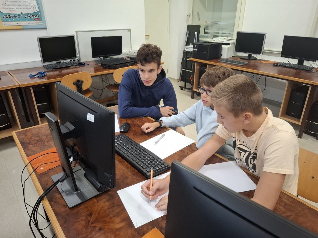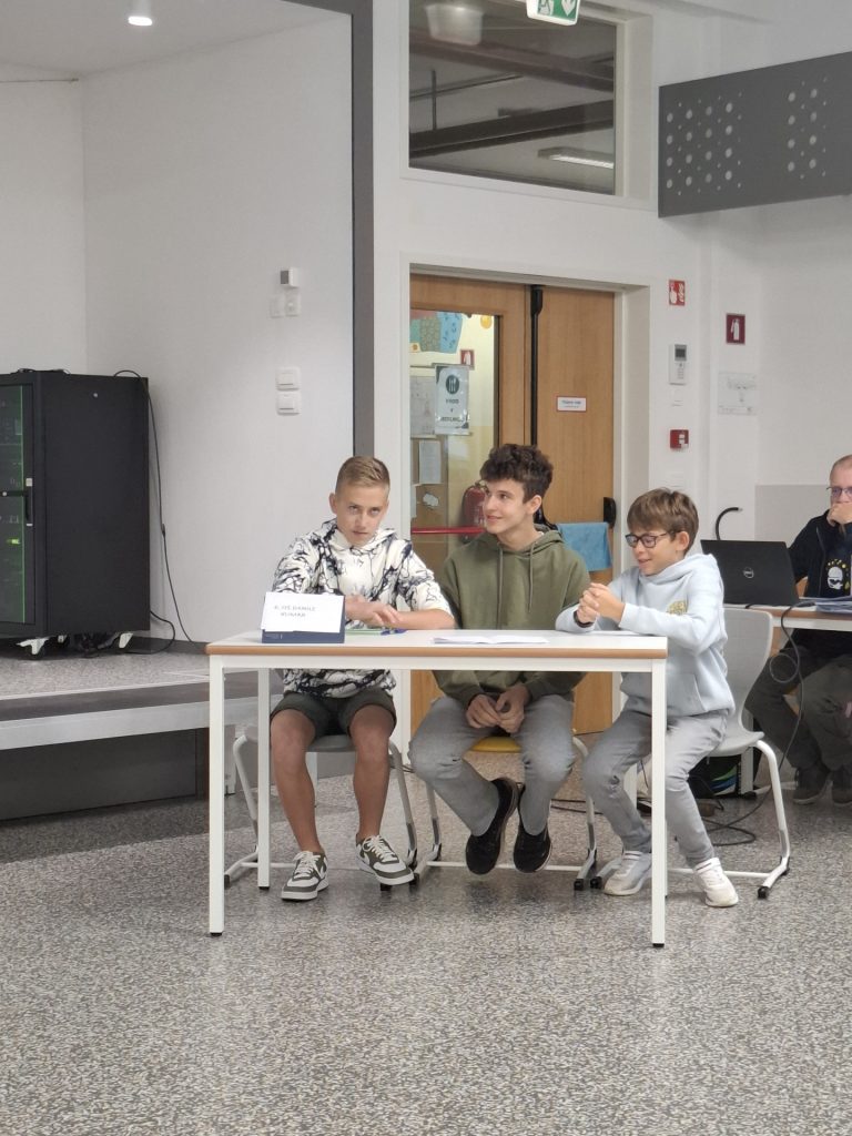 2. ekipa: Bine Grobelnik (7. b), Lovro Škerlak (8. b) in Erik Juršič (9. b)